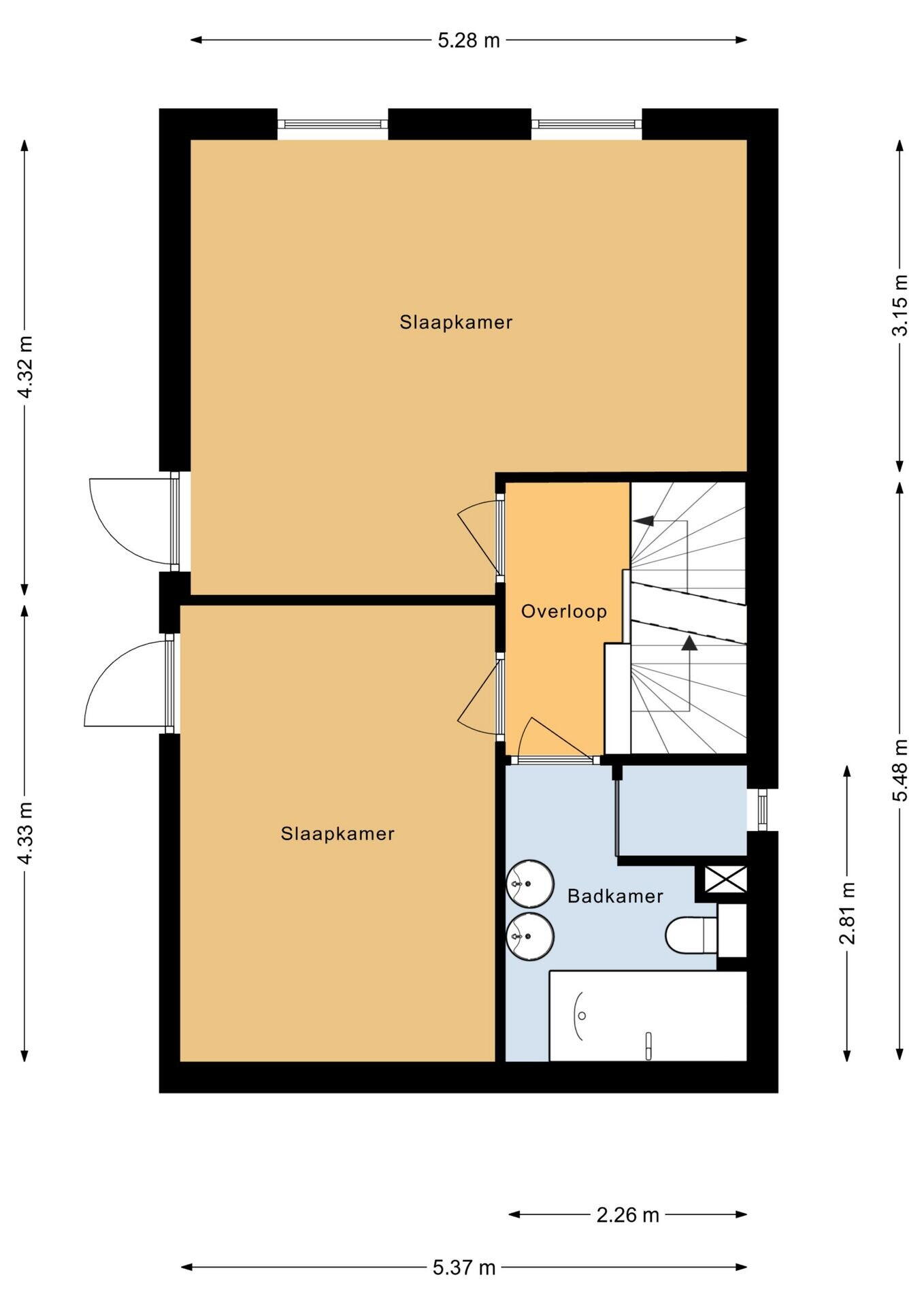 Op de eerste verdieping bevinden zich twee ruime slaapkamers (voorheen drie), beide met hardhouten eiken vloer, Franse balkons en stijlvol afgetimmerde deuren in jaren ’30-stijl. De badkamer is in 2023 compleet vernieuwd en luxe uitgevoerd met een inloopdouche, whirlpool bad met lichttherapie, modern wastafelmeubel en een tweede toilet.
